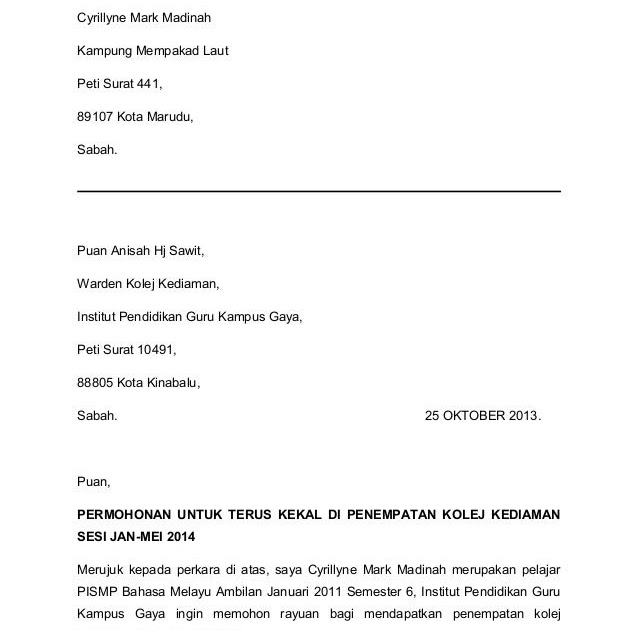 - Contoh Surat Rayuan Menduduki Kolej Kediaman Uitm